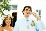 When Zach and Sara arrived, I was pretty stunned at how gorgeous they were. Zach was very handsome, with some light stubble on his face and flowing hair that suited him perfectly. He wore a crisp white shirt that had freshly been laundered (thanks to a local dry cleaner that saved the day!) He wore a silver and turquoise bowler tie and white rose boutonniere that Sara had crafted. Sarah was a stunning bride in her white bohemian dress that fit her like a glove. She wore a luscious flower crown and carried a wildflower-esque bouquet that she also made. Her long dark hair fell in loose waves over her shoulders and down her back. She also wore a matching flower arm band that was the cherry on top of her boho bridal look.