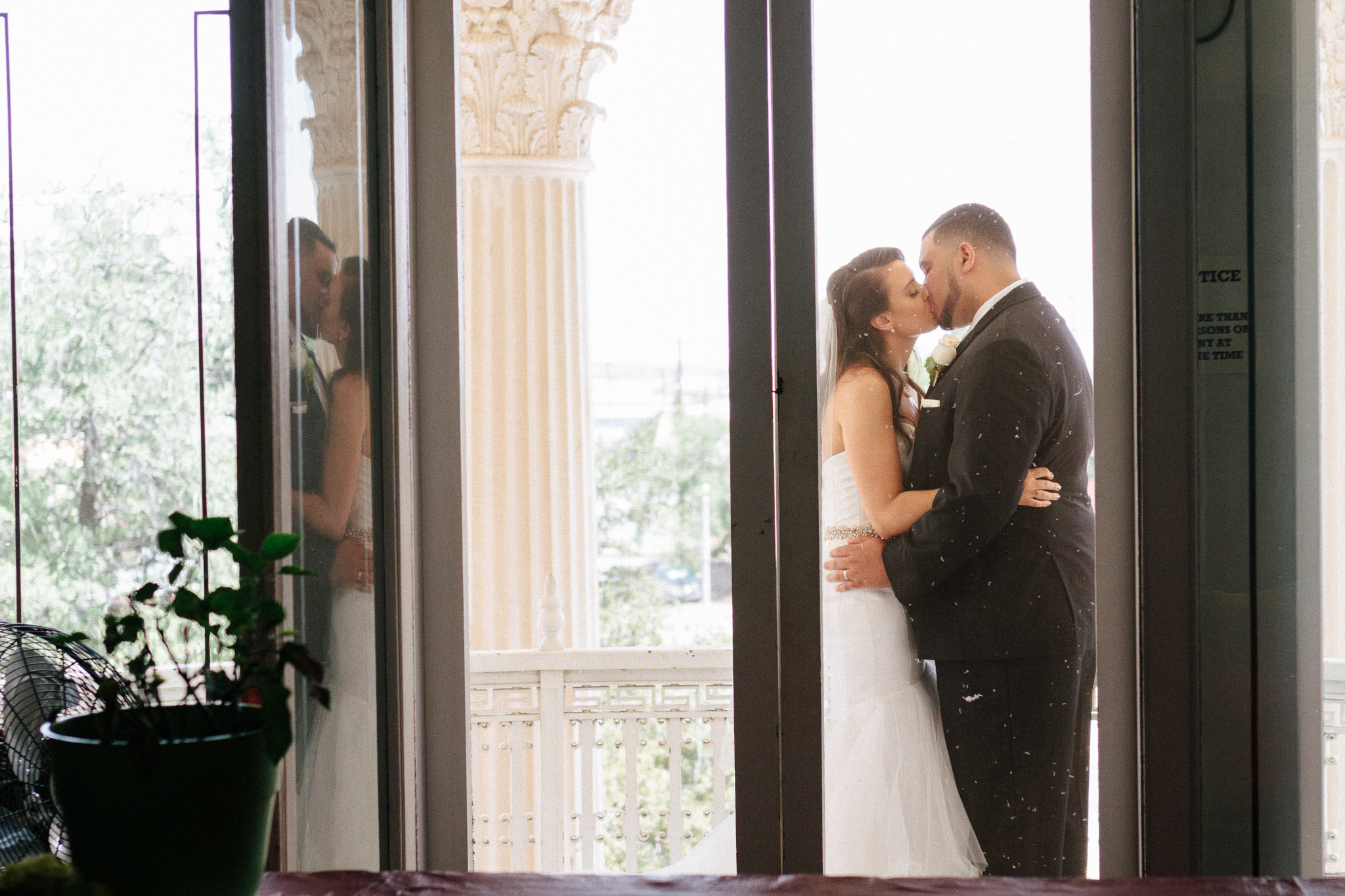 bride and groom kiss on the balcony-1