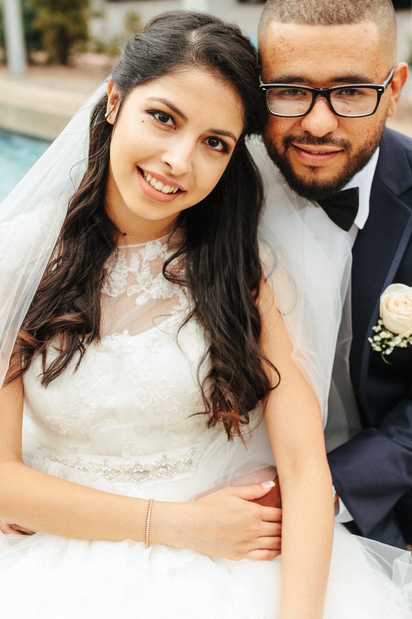 bride and groom pose for a close up_