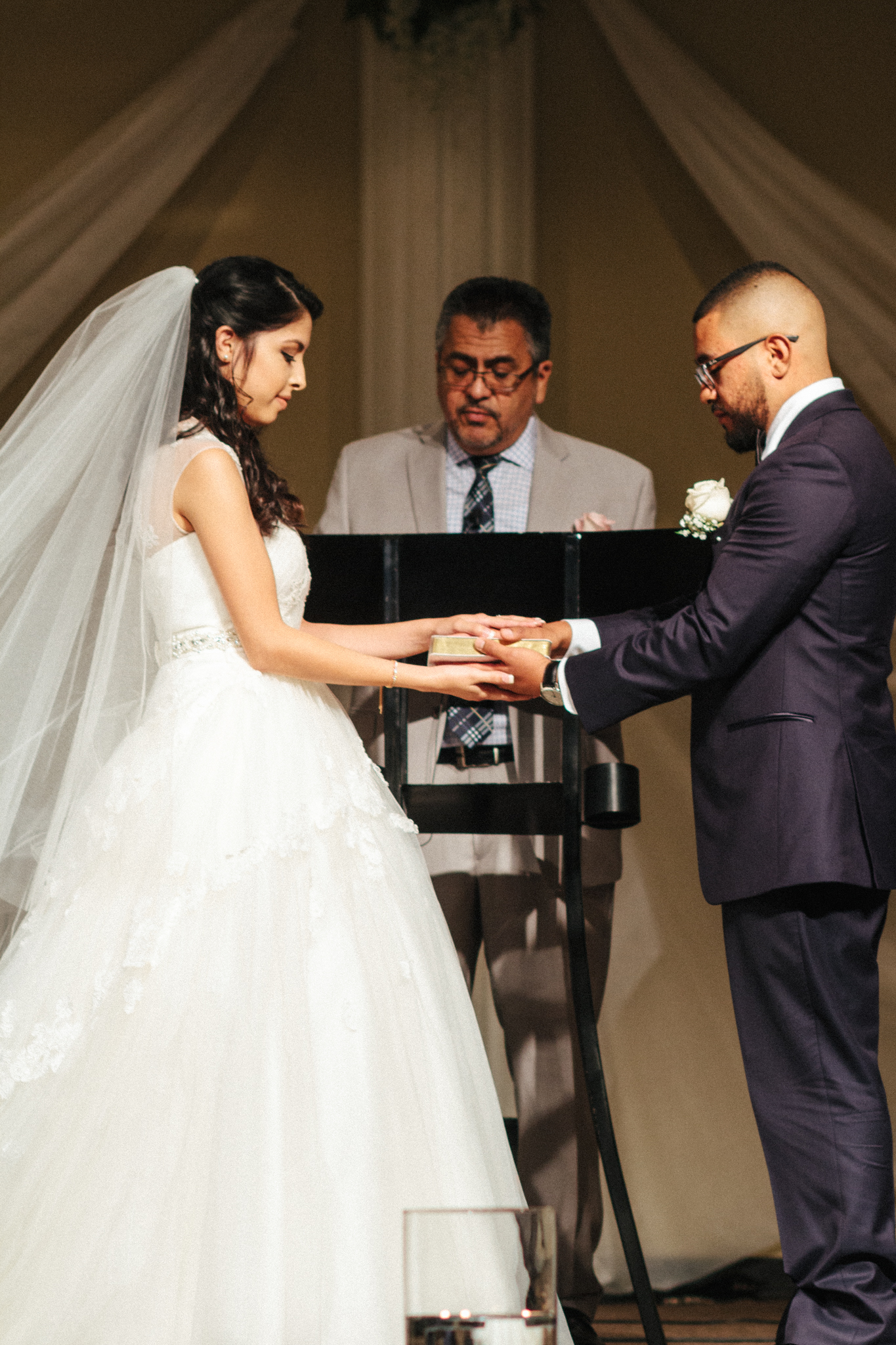 bride and groom pray during ceremony