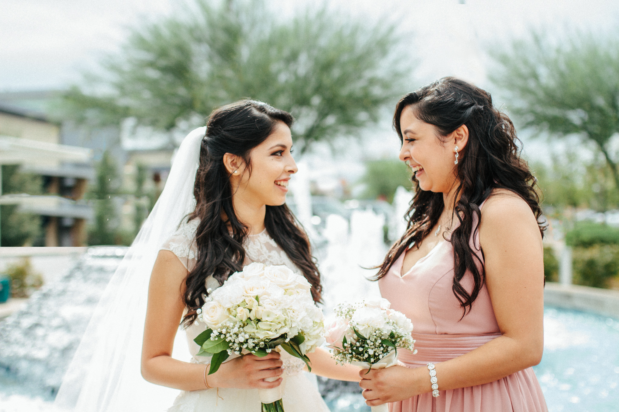 bride poses with her sister